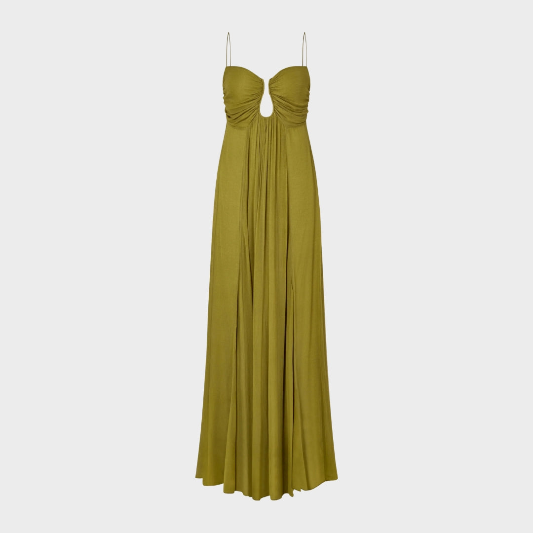 Ova maxi haljina nudi elegantnu siluetu uz udoban materijal. Ključni detalj dodaje suptilan šarm, savršen za dnevne i večernje prilike.