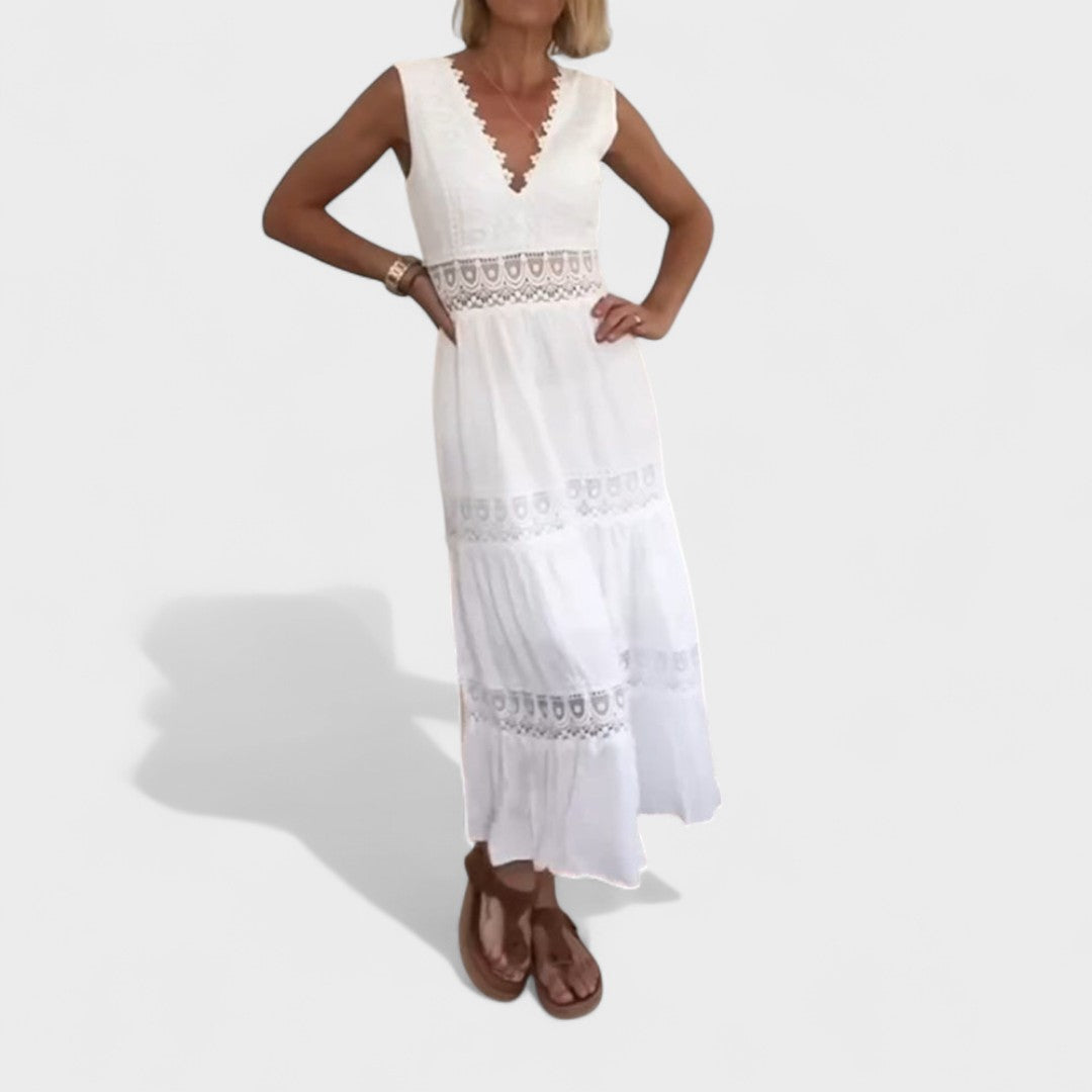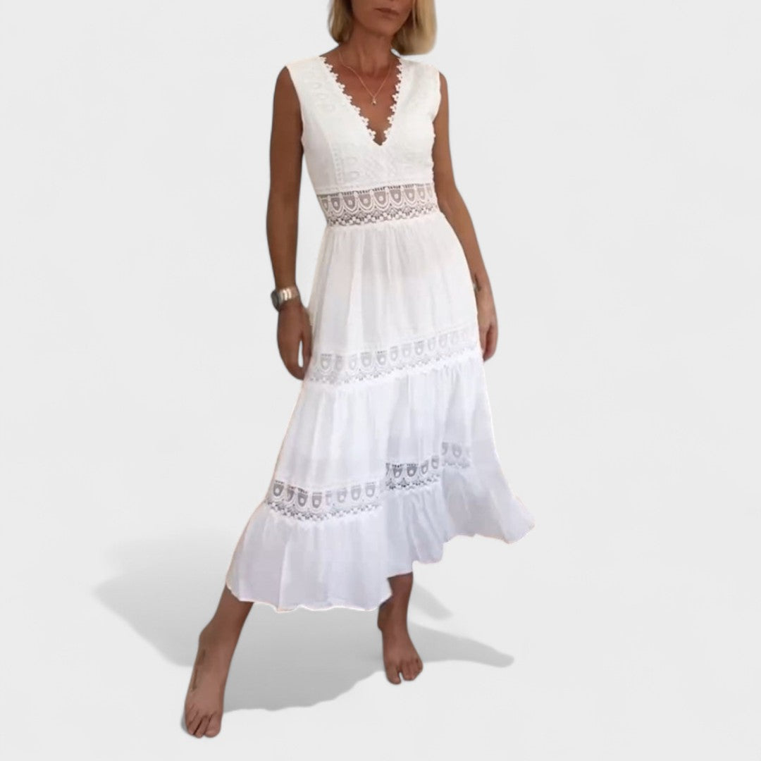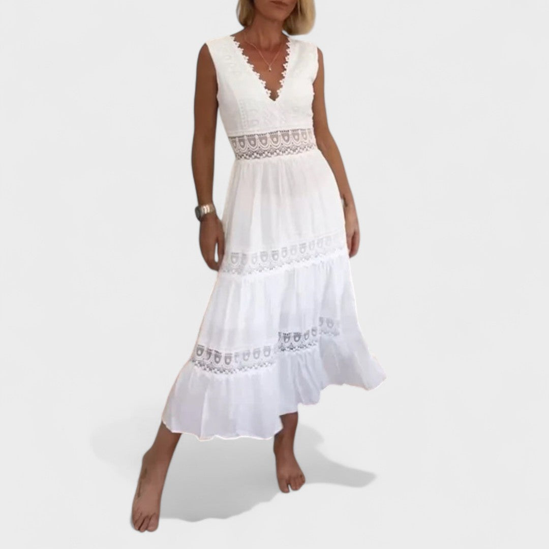 Elena - Elegantna Čipkasta Haljina s V-Izrezom
