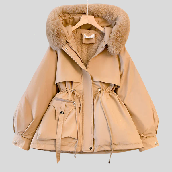 Umotajte se u udobnost i sofisticiranost s ovom zimskom jaknom dizajniranom da spoji stil i funkcionalnost. Moderan kroj s kapuljačom ukrašenom mekanim krznom odiše šarmom, dok topla unutrašnjost pruža zaštitu tijekom najhladnijih dana. Ima strukturirani kroj, praktične džepove i podesiv struk koji naglašava siluetu. Neizostavan komad za suočavanje sa zimom uz eleganciju i toplinu.