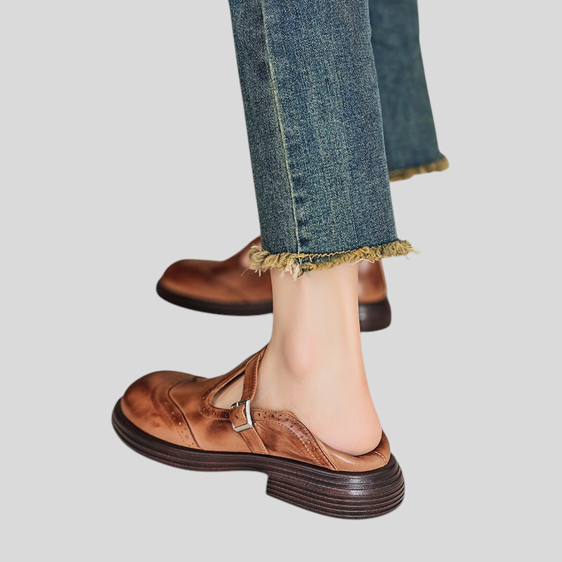 Otkrijte bezvremenski šarm ovih cipela u vintage stilu, inspiriranih klasičnim engleskim dizajnom. Suptilan T-remen s elegantnim perforiranim detaljima i podesivom bočnom kopčom pruža sofisticiran izgled s karakterom. Savršene za one koji cijene autentičnost, udobnost i stil u svakom koraku.
